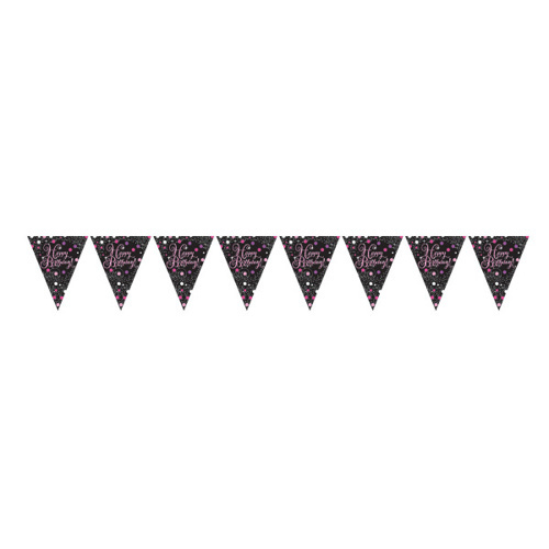 Vlaječková girlanda Luxus Pink - Happy Birthday 396 cm