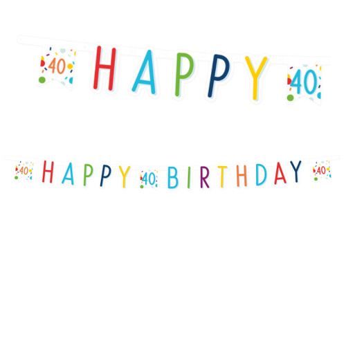 Party nápis Rainbow Confetti - Happy Birthday 40 - 180 x 14 cm
