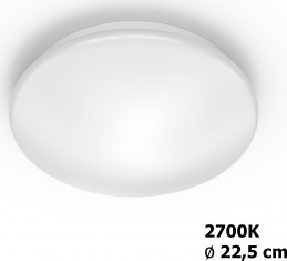 Stropní LED svítidlo Philips Moire o průměru 22,5 cm s příjemným teplým bílým světlem s teplotou chromatičnosti 2700K se snadno instaluje a je vhodné pro nasvícení interiérových prostor. Krytí IP20 značí vhodnost použití v místnostech bez zvýšené vlhkosti, není vhodné do koupelny. Svítidlo je...