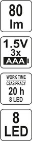 Lampa ruční 8 LED, s klipem, 80 lm