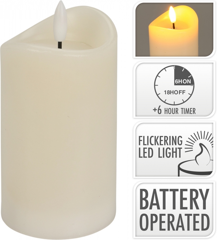 LED svíčka 12,5x7 cm s časovačem, barva slonová kost