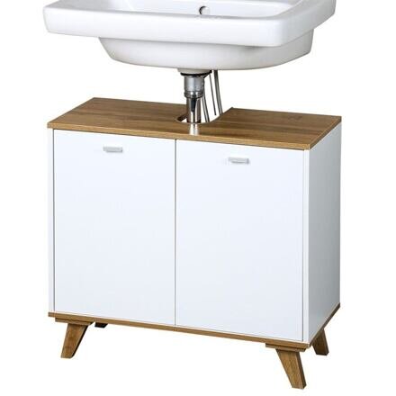 Ta szafka łazienkowa o wymiarach 60 x 55 x 28 cm wykonana jest z wysokiej jakości płyty wiórowej lakierowanej na biało, odpornej na wilgoć, dzięki czemu szafka jest idealna do warunków panujących w łazience. Dzięki dwóm drzwiczkom i wewnętrznym przegródkom łatwo uporządkujesz wszystkie swoje łazienkowe akcesoria, zapewniając przejrzystość i porządek.