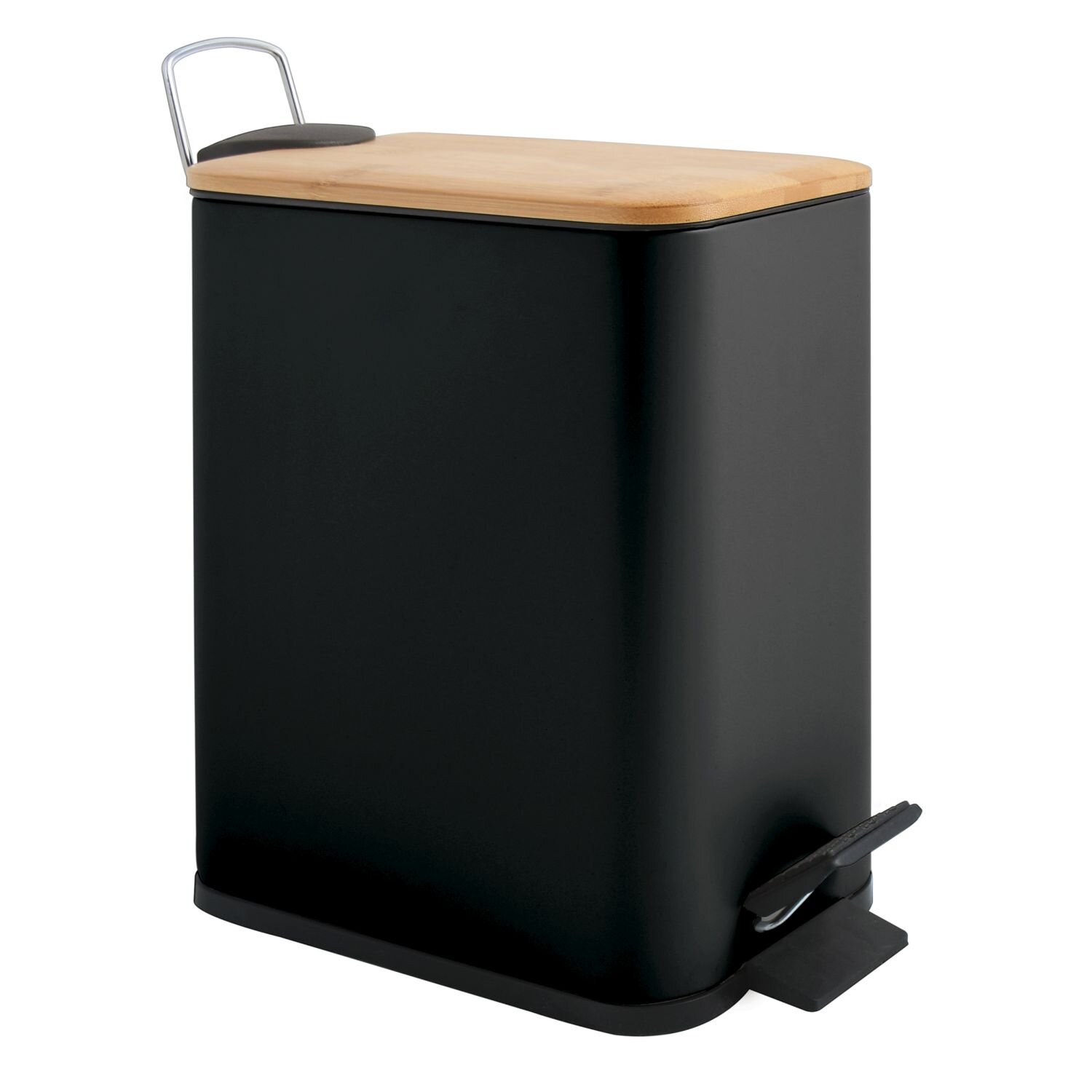 Spirella pedálový odpadkový koš ERIK, matná černá, ocel, bambusové víko, 5 L