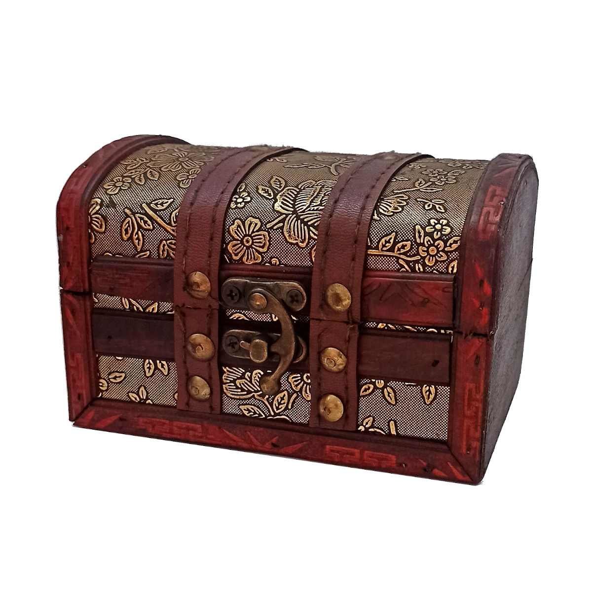 Šperkovnice s kovovou přezkou vyrobená z materiálu dřevo a kůže, retro design. Rozměry 13 x 10 x 8.5 cm. EAN 5999050050347 przeczytaj całość