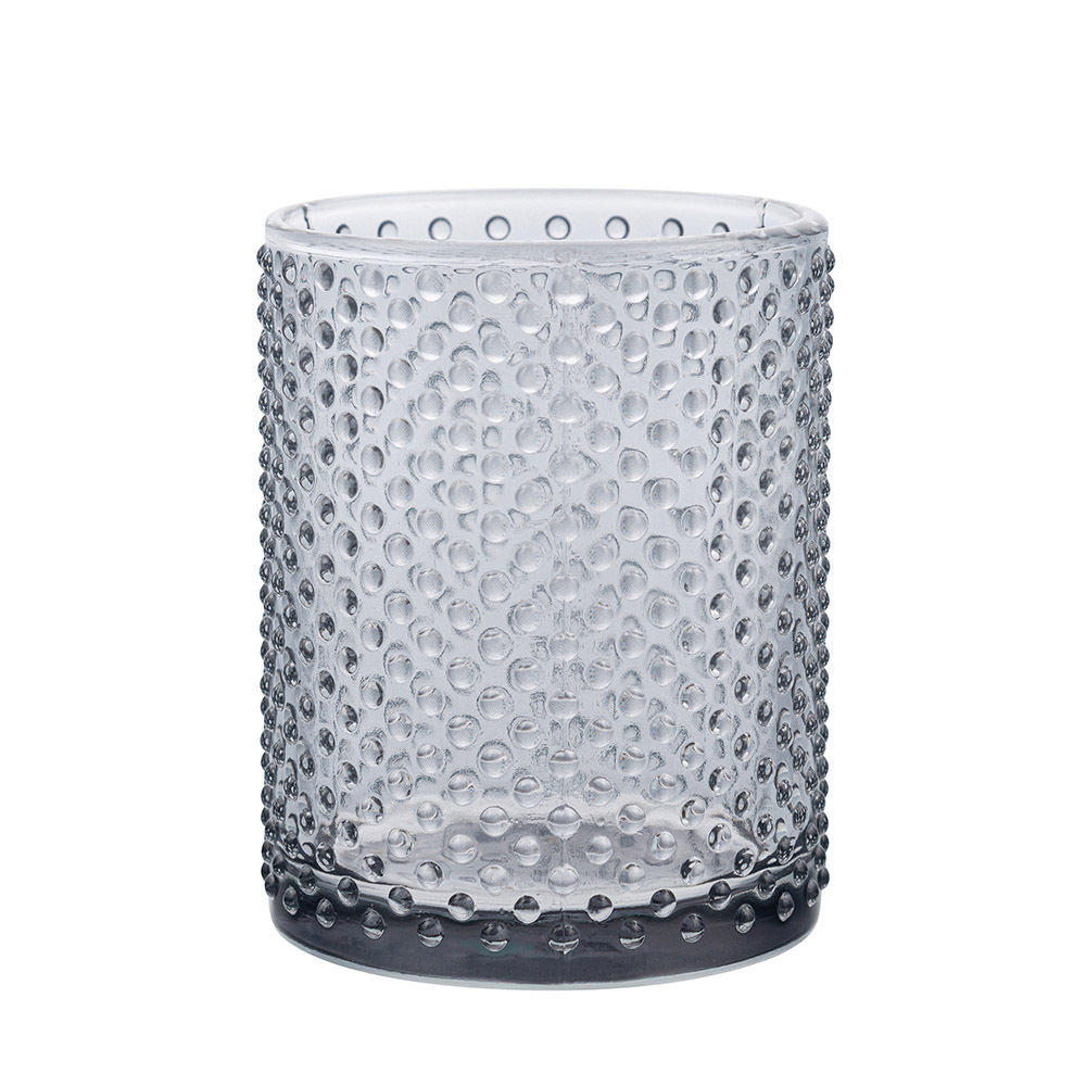 SKLENĚNÝ KELÍMEK NA KARTÁČKY 8X8X10CM POPELAVÝ (KOUPELNA)