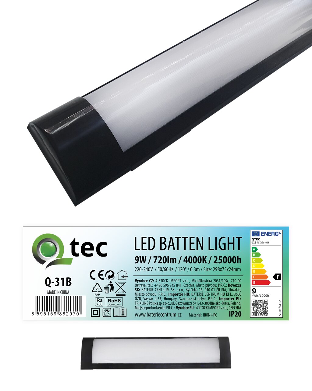 Energooszczędne oświetlenie LED podszafkowe 9W 720lm Batten LightQ-31B Qtec. Emituje przyjemne neutralne białe światło 4000K. Oprawa ma szerokie, praktyczne zastosowanie - można ją zamontować we wnętrzu np. nad kuchenną zabudową, w korytarzach, holach, biurach, w jadalni, kawiarni, sklepie, warsztacie, garażu itp. W ofercie dostępne są lampy w 2 wariantach kolorystycznych: czarnym i białym.