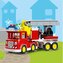 LEGO DUPLO 10969 Wóz strażacki łączy przygodę z nauką. Dzieci od 2 lat pokochają zabawę wozem strażackim wyposażonym w migające światła i włączoną syrenę, którymi łatwo sterować dzięki dołączonym bateriom. Wyruszcie z ratownikami na misję ratowania kotka utkniętego wysoko na drzewie! Dzięki ruchomej drabinie, obrotowemu koszowi platformy i smakołykom dzieci mają wiele sposobów, by uratować zwierzątko. A jeśli potrzeba dodatkowej pomocy, wypróbuj funkcjonujący wąż strażacki - zabawa nabiera prawdziwego wymiaru.