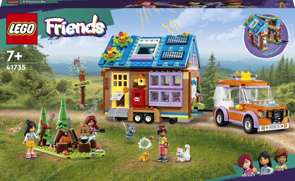 • Dom pełen przygód - Zaproś dzieci od 7. roku życia do budowania i kreatywnej zabawy z zestawem LEGO® Friends Mały domek na kółkach (41735), który zawiera model samochodu, domek i ognisko • 3 minilaleczki i 3 zwierzątka - W zestawie znajdują się postacie Lea, Liann, Paisley oraz ich pupile • Masa detali - Ten mały domek oferuje bogactwo detali i akcesoriów, w tym kuchnię z lodówką, piekarnikiem i szufladami, łazienkę, łóżko dla każdej minilaleczki, budkę dla ptaków, skrzynkę pocztową, panele słoneczne, rośliny i wiele innych • Rozpal wyobraźnię - Akcesoria obejmują liście, siano, wodę i smakołyki dla zwierzątek, lampę, nóż, ser, empanady, kiełbaski, patelnię z jajkiem, patyczki, kłody i tabliczkę • Świetny prezent dla dzieci od 7 lat - Ten zestaw LEGO® Friends będzie doskonałym prezentem urodzinowym, świątecznym lub okazjonalnym dla dzieci, które uwielbiają kreatywną zabawę, kemping lub zabawę w domki • Dostosowany do młodych budowniczych - Model małego domku na kółkach ma ponad 13 cm wysokości, 18 cm szerokości i 11 cm głębokości • Intuicyjna instrukcja budowy - Aplikacja LEGO® Builder poprowadzi Ciebie i Twoje dziecko przez przygodę budowania, oferując narzędzia do przybliżania i obracania modeli 3D, zapisywania zestawów i śledzenia postępów • Nowe pokolenie w miasteczku Heartlake - W styczniu 2023 roku świat LEGO® Friends rozszerzył się o nowe postacie i miejsca, aby dostarczyć jeszcze więcej inspiracji do ekscytujących przygód • Produkt wysokiej jakości - Od 1958 roku wszystkie klocki LEGO® spełniają rygorystyczne branżowe normy, dzięki czemu są spójne, kompatybilne i gwarantują radosną zabawę • Bezpieczeństwo przede wszystkim - Klocki i elementy LEGO® Friends są upuszczane, podgrzewane, zgniatane, skręcane i analizowane, aby upewnić się, że spełniają rygorystyczne globalne standardy bezpieczeństwa