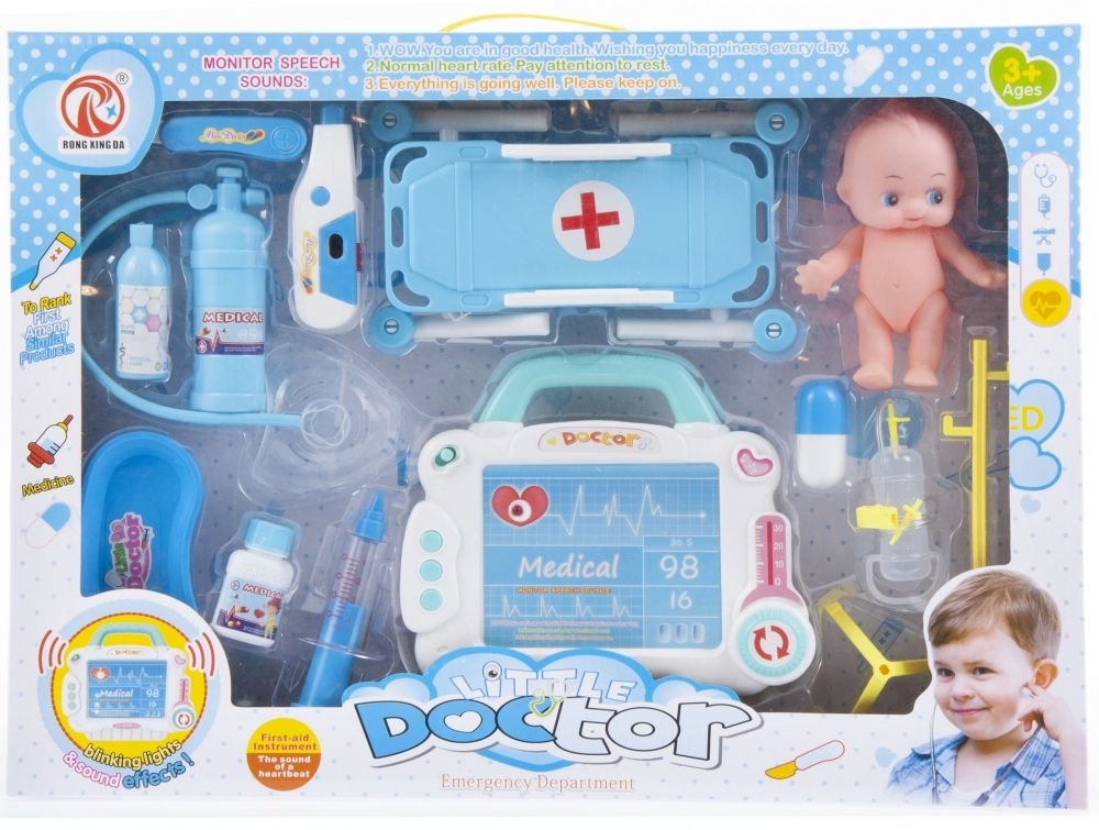 Výhody produktu: dítě může poznat, o čem je profese lékaře. Souprava MEGA CREATIVE je skvělým dárkem pro vaše dítě, který mu ukáže, o čem je práce lékaře. Sada má blikající světla a zvukové efekty, Přístroje první pomoci, zvuk tlukotu srdce. Sada obsahuje: dětskou panenku, nosítka, kardio...