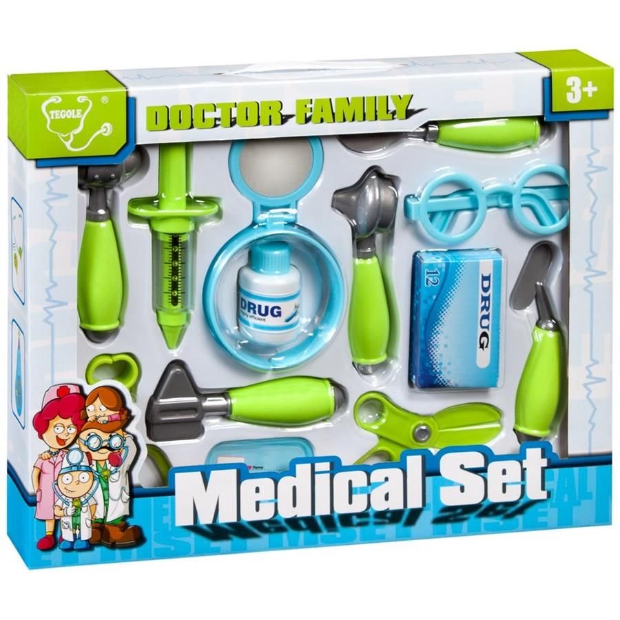 S Mega Ceative Medical Kit nás žádná choroba neděsí. Máme všechny nástroje a léky, které potřebujeme k uzdravení našich pacientů! Sada obsahuje: kladivo, stříkačku, čelovou lampu, obvazové nůžky, běžné nůžky, lékařský průkaz, otoskop, skalpel, brýle, láhev, lékovku a další lékařské doplňky....