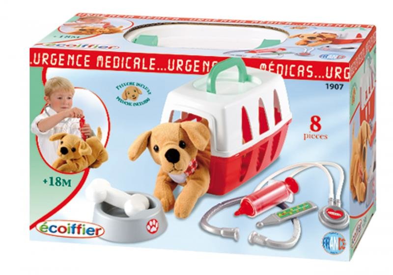 Walizka dla małego weterynarza z akcesoriami i pieskiem. Walizkę można używać jako transportowy box dla pieska oraz do przechowywania akcesoriów. W zestawie np. miska dla pieska, kość, wyposażenie medyczne. Wymiary walizki: 24 x 15 x 14 cm. przeczytaj całość