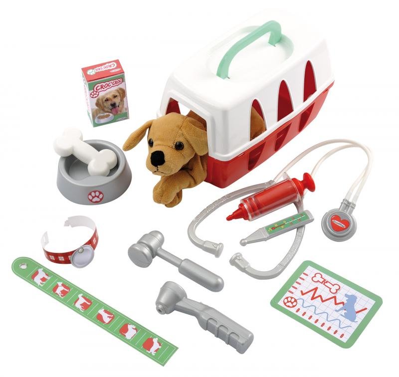 Vyšetřovací vozík pro malé veterináře. Součástí i pejsek s přenosným kufříkem. Nechybí lékařské nástroje pro vyšetření pejska. Rozměry vozíku: 36,5 x 51 x 32 cm. Rozměry kufříku: 24 x 15 x 14 cm. przeczytaj całość