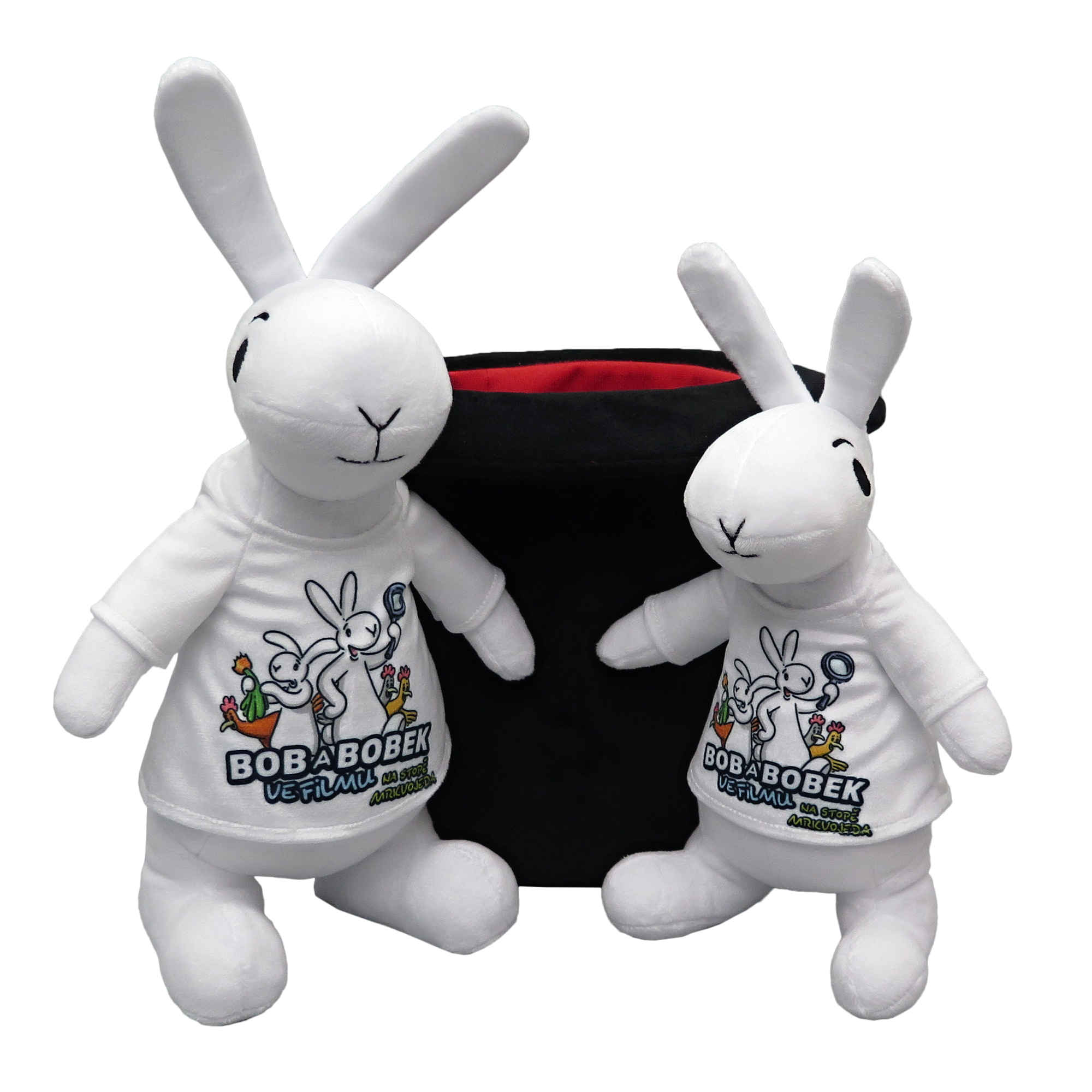 Králíci Bob a Bobek ve filmových tričkách a klobouku, 3dílná sada, plyšová hračka. Limitovaná edice!