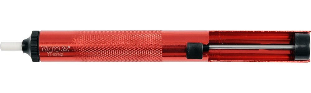 Odsávačka cínu Yato délky 190 mm. • Odsávačka cínu 19,5 x 190 mm Yato • Délka těla odsávačky 190 mm • Průměr těla odsávačky 19,5 mm • Teflonový hrot materiál tělo z hliníku, koncovka odolný plat rozměry (mm) 19.5X190 przeczytaj całość