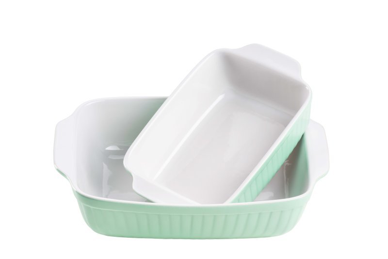 Sada 2 keramických zapékacích mís ve velmi atraktivním designu s čistými liniemi. Praktické v kuchyni, elegantní na stole. Nadčasový design. Vhodné pro použití v troubě do 300 °C. Mísy lze mýt v myčce nádobí. Barva - zelená, bílá. Materiál - vysoce kvalitní keramika. Rozměry - 1x 25, 5x17, 5x7... przeczytaj całość
