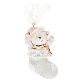 Ozdoba medvídek v punčošce závěsná 5x8 cm