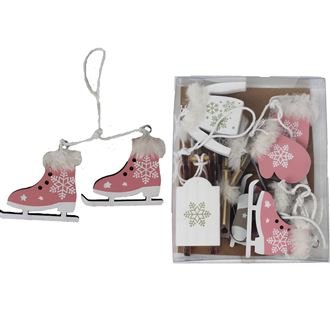 Sada Vánočních roztomilých ozdobiček k zavěšení - rukavice, svetřík, sáňky, brusle. V růžovo-bílém provedení. Sada 10 ks. Materiál - na bázi dřeva. Rozměry: 3,5-7,4x0,5 cm, výška 1,2-5 cm. przeczytaj całość