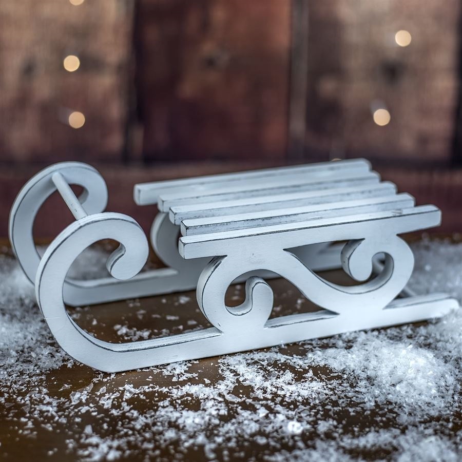Dřevěné dekorační sáňky v bílé barvě. Krásná dekorace na Vánoční i zimní období. Materiál - dřevo. Rozměry - výška 10,2 cm, 29x10,5 cm. przeczytaj całość