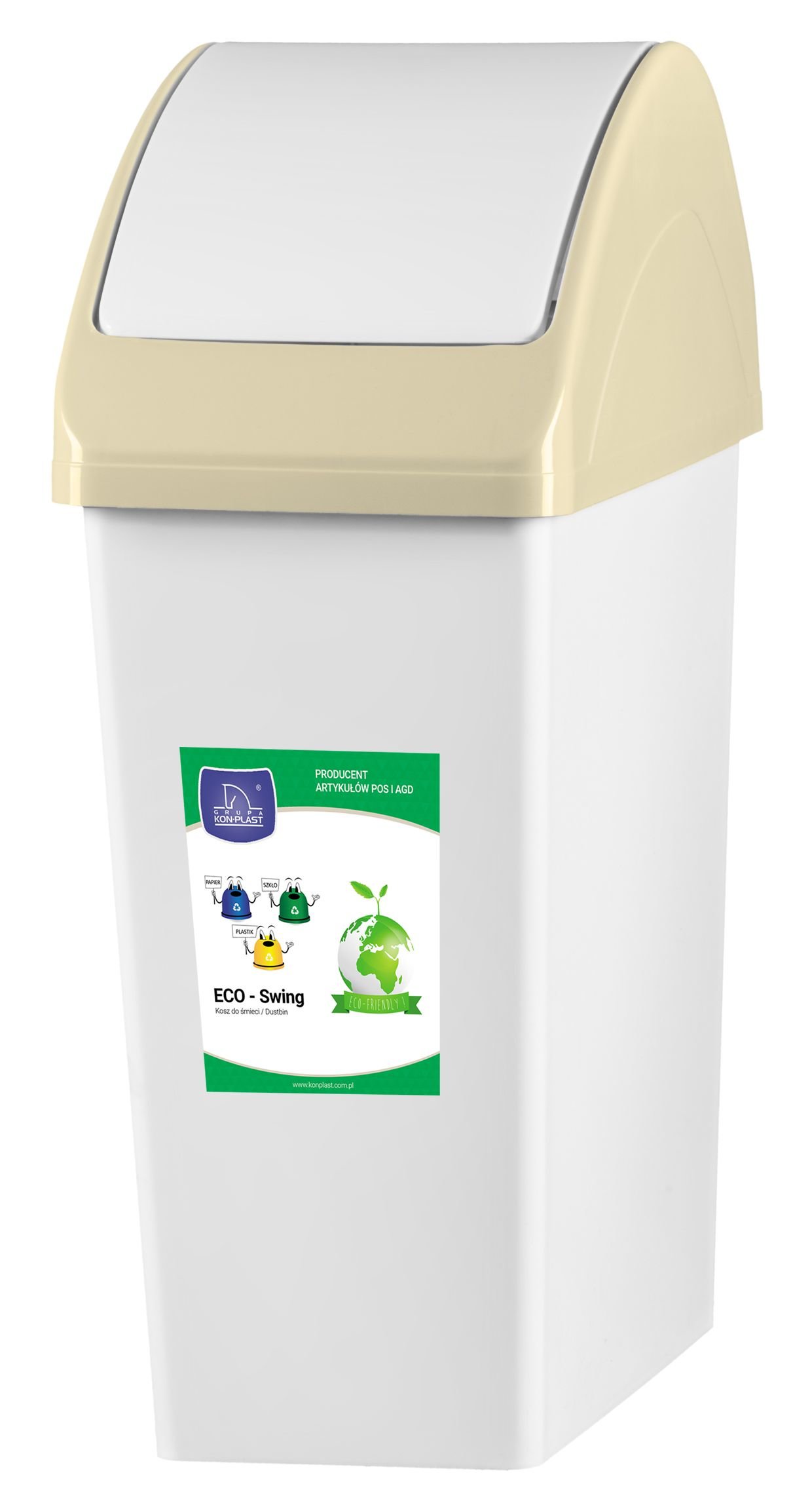 Koš odpadkový ECO-Swing 10 l bílý s víkem slonová kost pla