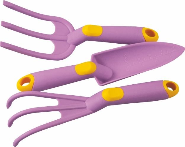 Sada 3 ks zahradnického plastového náčiní ve fialovém provedení. Sada obsahuje - 1x rýček, 1x hrabičky a 1x ruční vidle.Materiál - plast. przeczytaj całość