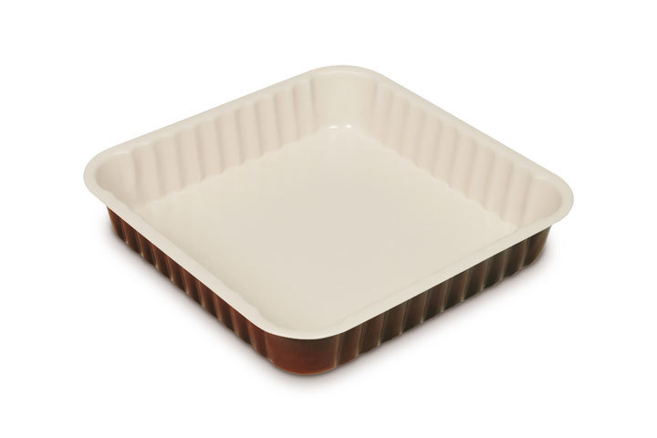 Forma do ciasta z serii Chocoforme jest praktyczna i łatwa w czyszczeniu, dwukolorowa. Czekoladowo zabarwiona zewnętrzna powierzchnia i kremowo zabarwione wnętrze.