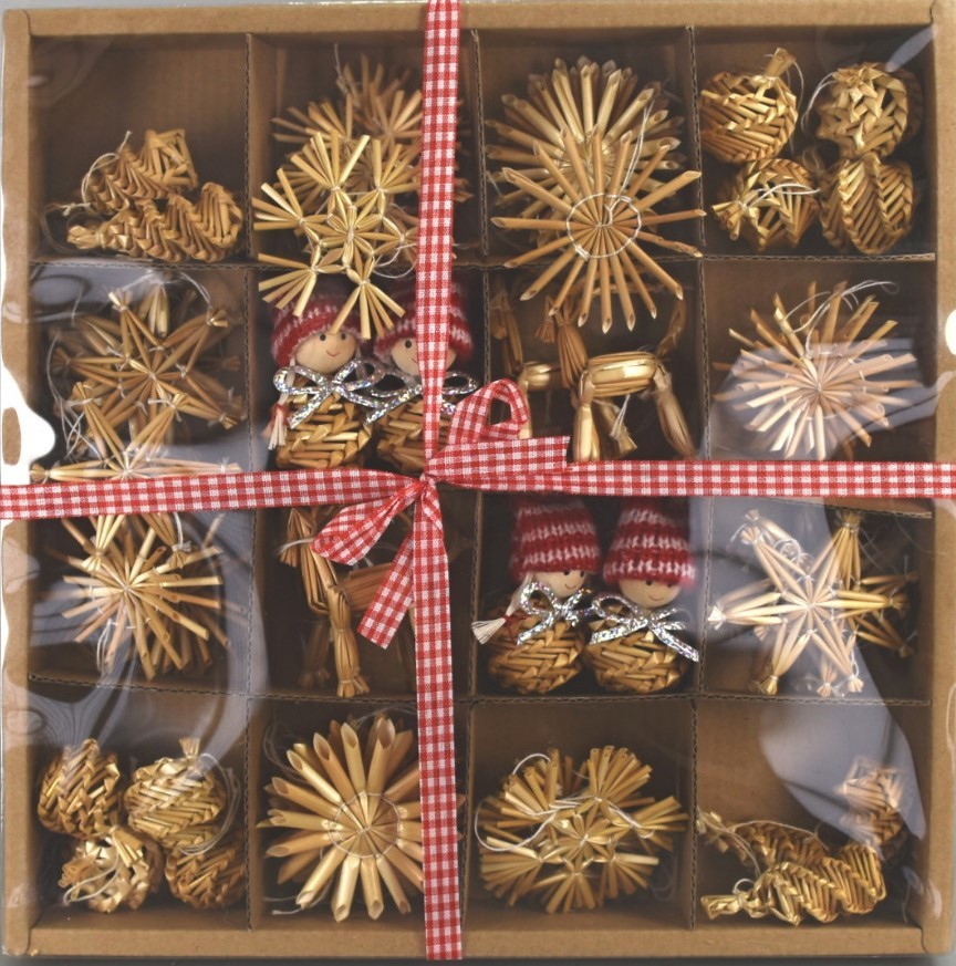 Krásná sada 38 ks ručně vyráběných slaměných ozdobiček je ideální pro tradiční Vánoční výzdobu. Využijete ji na zdobení stromečku, girland, větví,..Dárkově zabaleno.Rozměry - průměr jedné ozdobičky cca 6 cm. przeczytaj całość