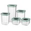 - sada 5 dóz pro nejrůznější druhy potravin se vzduchotěsnými víky