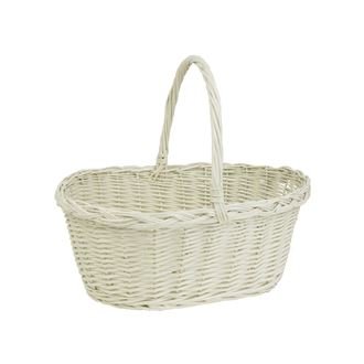 Košík oválný s pletýnkou.Rozměry : 35 x 25 cm, výška 16 cm, celková výška s uchem 30 cm.Barva : bílá.Materiál : proutí. przeczytaj całość