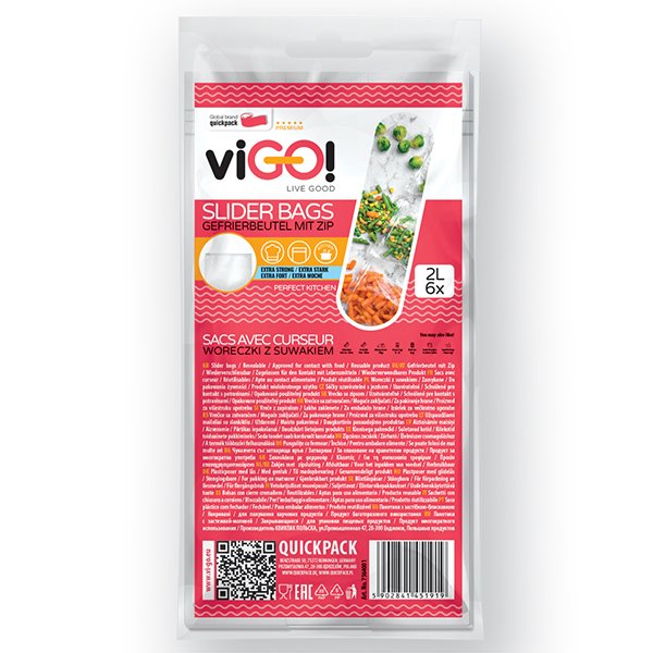 viGO! uzavíratelné sáčky s jezdcem - 2L v balení 6Ks ideální na potraviny pro uskladnění v lednici či mrazničce. Sáčky jsou velmi pevné a je možné je používat opakovaně díky jezdci se velmi pohodlně otevírají a zavírají. Sáčky jsou určené pro uchovávání potravin.Balení 6Ks - 2L przeczytaj całość