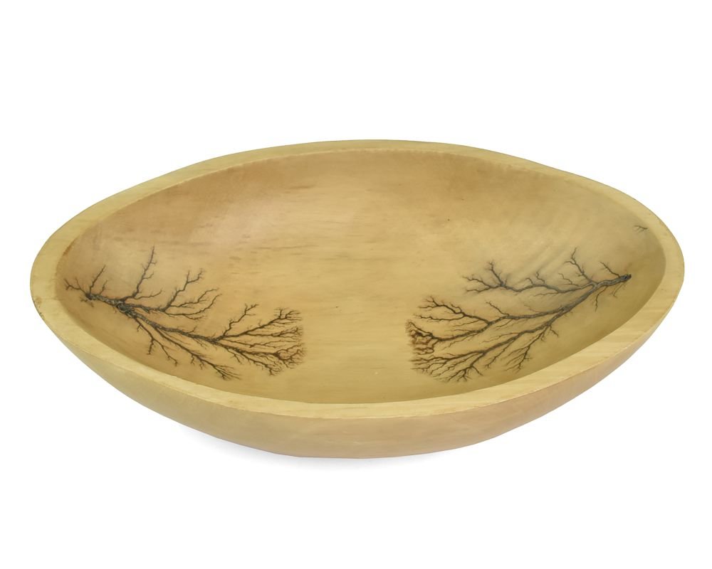 Ta ręcznie wykonana misa z drewna ma wymiary około 31 x 19 cm i wysokość około 7 cm, dzięki czemu nadaje się głównie do produktów suchych. Ze względu na naturalny materiał każdy egzemplarz jest unikatowy - może nieznacznie różnić się wyglądem i rozmiarem, co podkreśla wyjątkowość i charakter produktu.