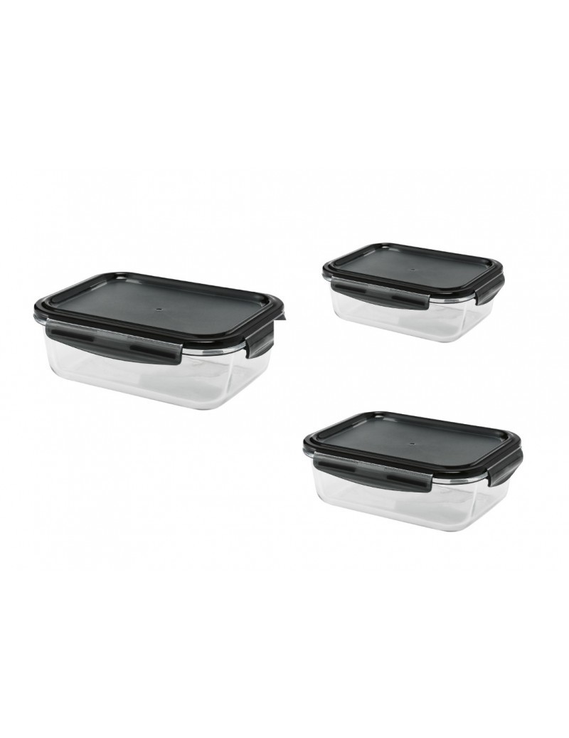 Sada 3 kusů hermetických hranatých Boxů černý BRANDANI