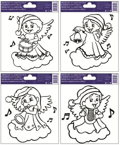 Předlohy na malování na sklo s vyvýšenou konturou - andílek 14 x 14 cm (1 kus)