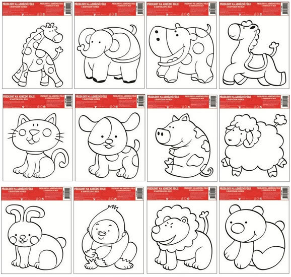 Předlohy na malování na sklo s vyvýšenou konturou - zvířátka - 1 kus