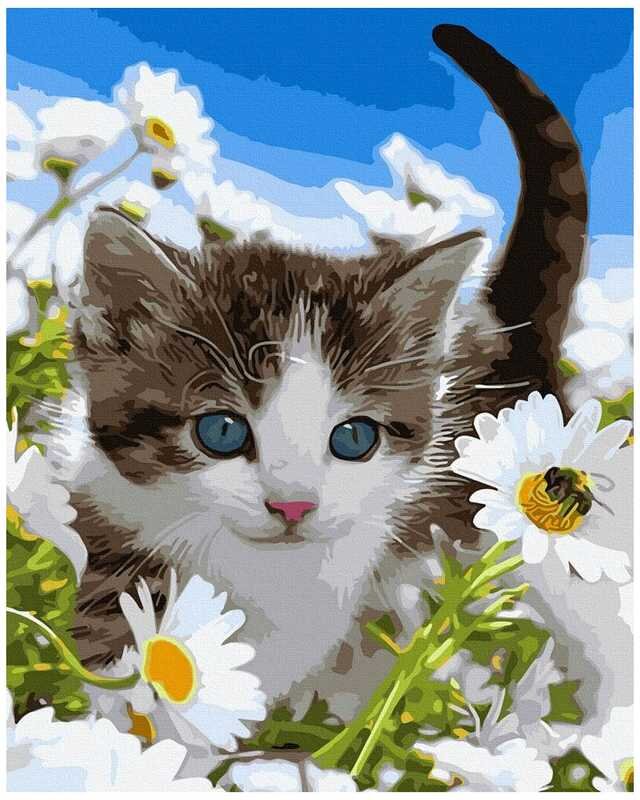 Numeromalowanie Classic 30x40cm Kotek w plu rumianków PC3040133, iPicasso