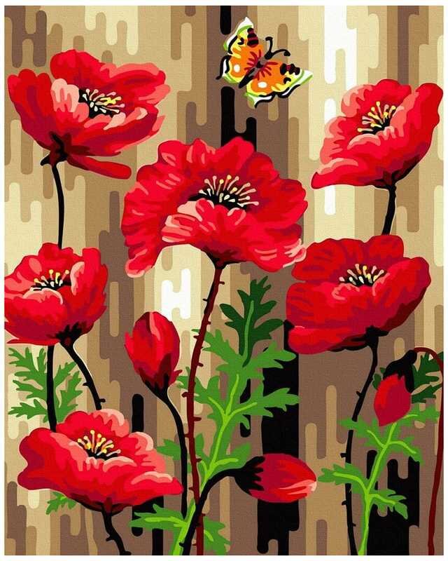 Numeromalowanie Classic 40x50 Szkarłatne maki i motylek, iPicasso