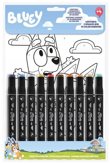 Zestaw kreatywny Bluey to bogaty zestaw do kreatywnej zabawy dla dziecka. • 10 dwustronnych flamastrów• Wymiary: 29x23x1 cm• Materiał: PVC, papier• Zawartość : 2 kartki do rysowania po numerkach przeczytaj całość