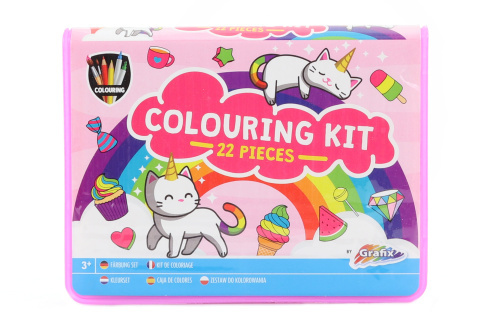 Dětská malířská sada obsahuje 22 ks – 12 voskovek, jedny vodové barvy s osmi barvami, štětec a gumu. Ve dvou barevných provedeních. przeczytaj całość
