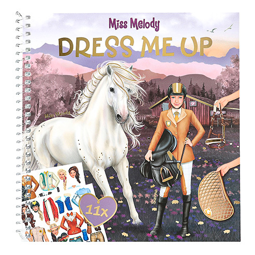 Oblíbený kreativní sešit v pevných deskách v jedinečném designu značky Miss Melody. Desky obsahují sešit s předkreslenými obrázky koní a modelek, které si můžete sami navrhnout! K dispozici jsou archy samolepek s nejrůznějším potřebami a doplňky pro koně na dotvoření podle Vašich představ....