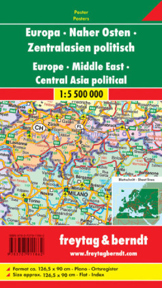 Freytag & Berndt Poster Europa, Naher Osten, Zentralasien politisch, ohne Metallstäbe. Europe, Middle East, Central Asia politic