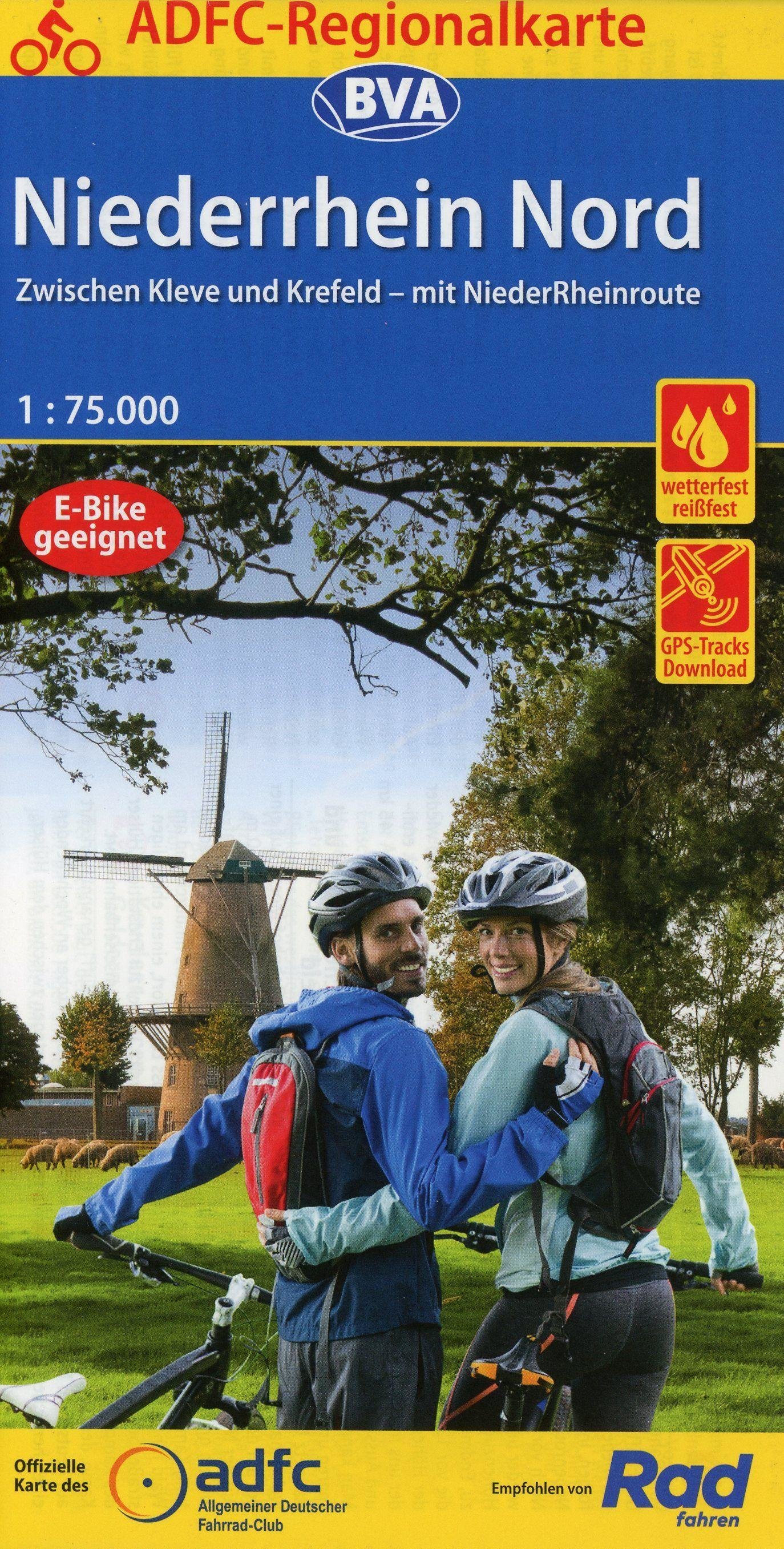 ADFC-Regionalkarte Niederrhein Nord mit Tagestouren-Vorschlägen, 1:75.000, reiß- und wetterfest, GPS-Tracks Download (niemiecki)