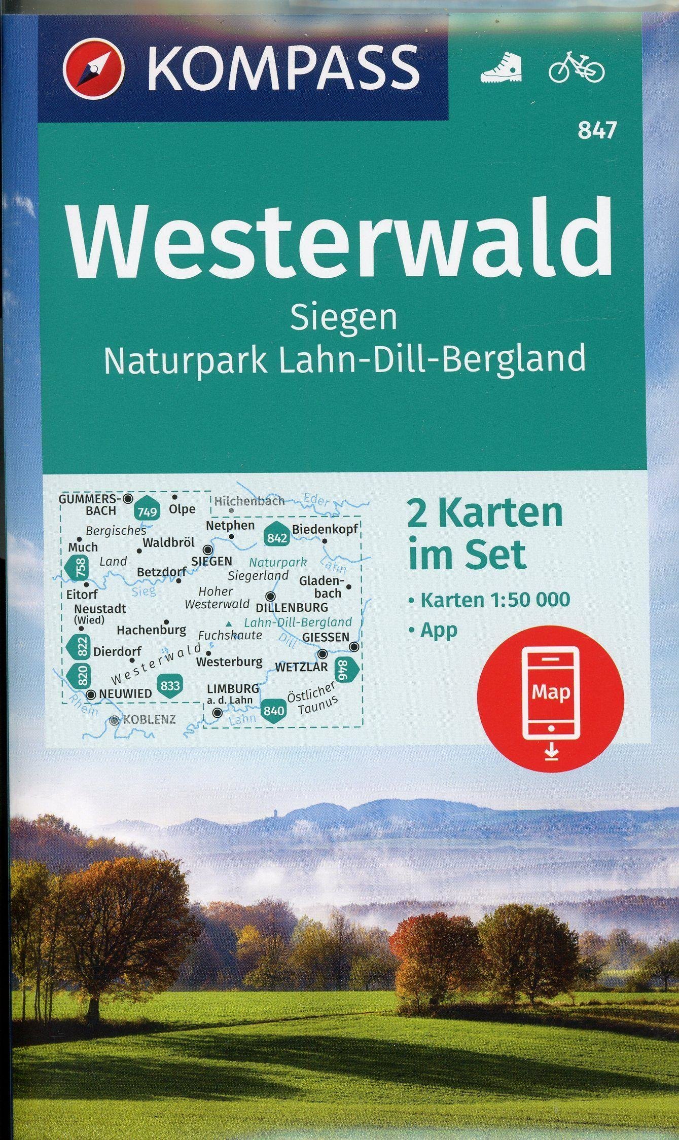 KOMPASS Wanderkarte Westerwald, Siegen, Naturpark Lahn-Dill-Bergland 1:50 000 (niemiecki)