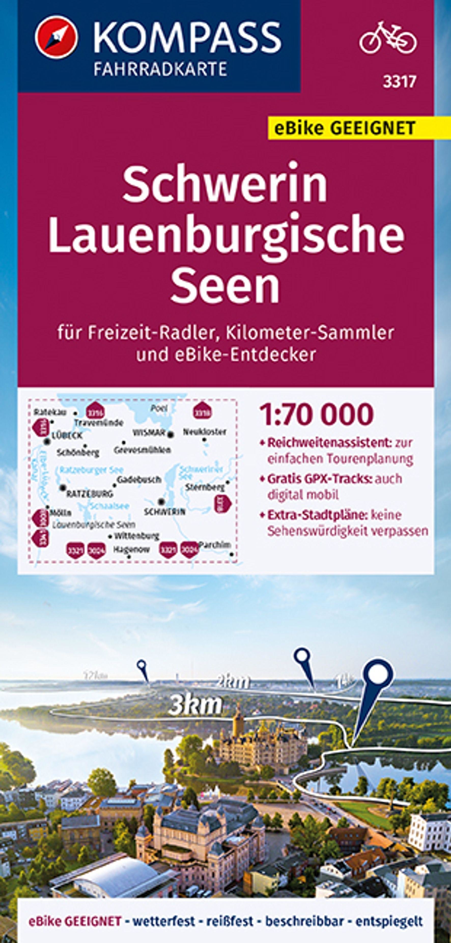 KOMPASS Fahrradkarte 3317 Schwerin, Lauenburgische Seen 1:70.000 (niemiecki)