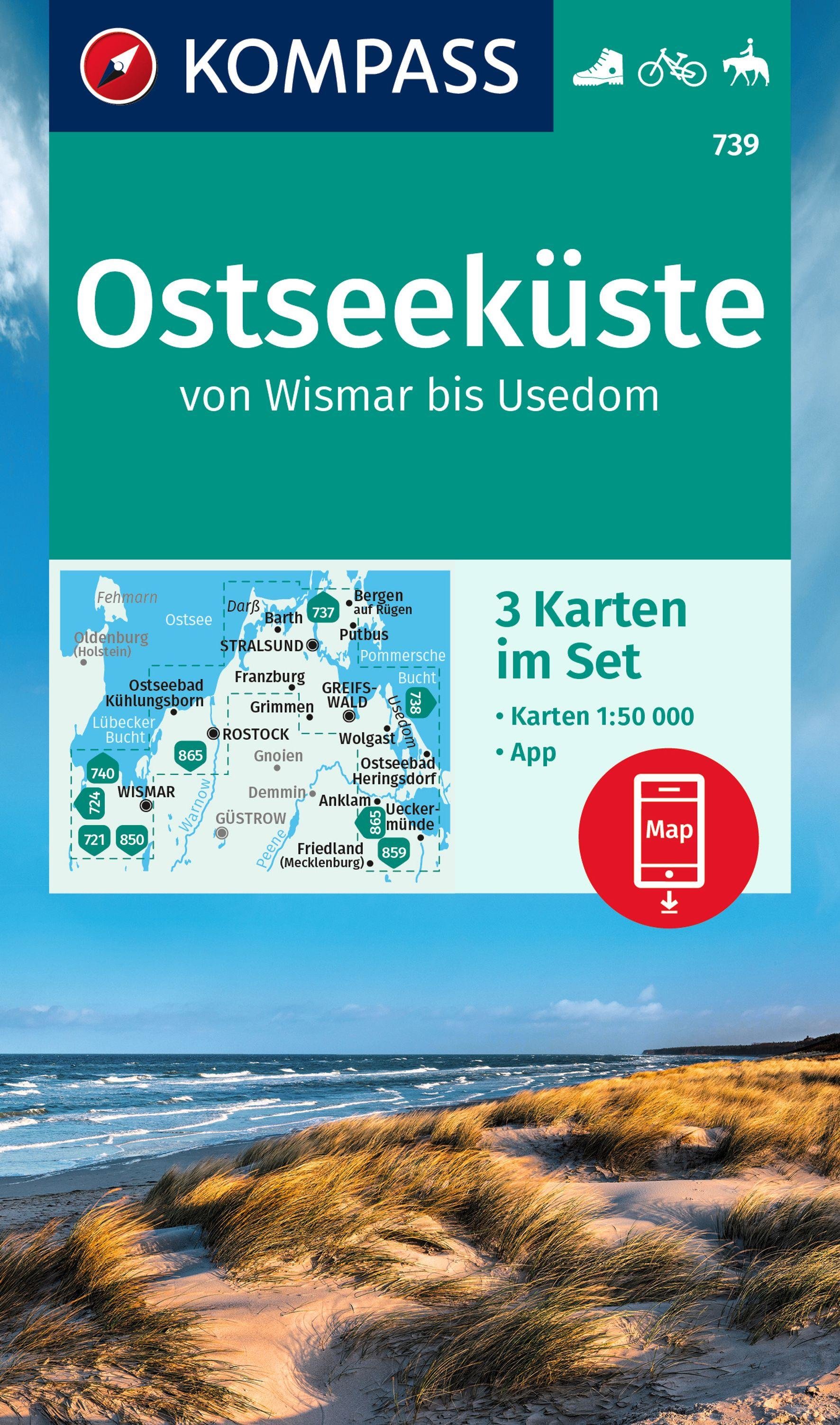 KOMPASS Wanderkarte 739 Ostseeküste von Wismar bis Usedom (3-K-Set) (niemiecki)