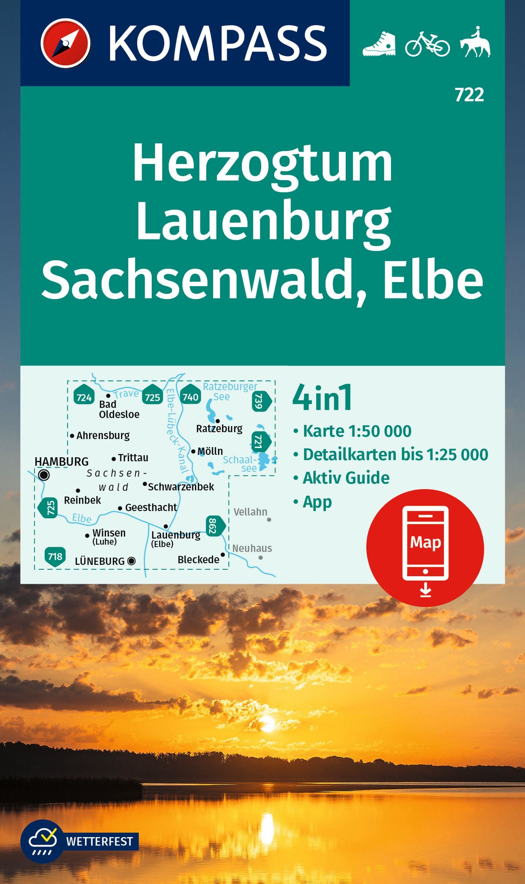 KOMPASS Wanderkarte 722 Herzogtum Lauenburg, Sachsenwald, Elbe 1:50.000 (niemiecki)