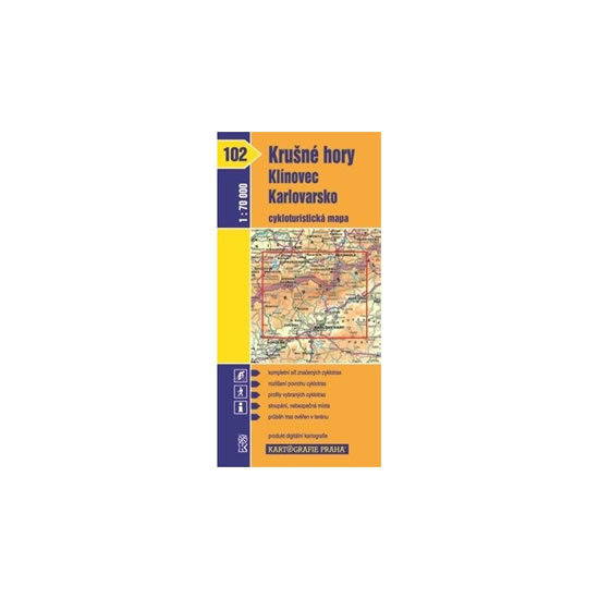Mapa č. 102 – Krušné hory, Klínovec, Karlovarsko z nové edice cykloturistických map zobrazuje v měřítku 1 : 70 000 oblast Krušných hor. Jde především o okolí Sokolova, Karlových Varů, Chodova, Klášterce n. Ohří, Schwarzenbergu.
