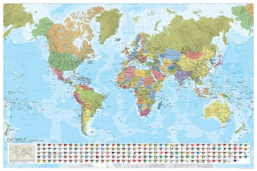 Weltkarte, Planokarte (niemiecki)
