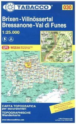 Tabacco topographische Wanderkarte Brixen, Villnöss. Bressanone, Val di Funes
