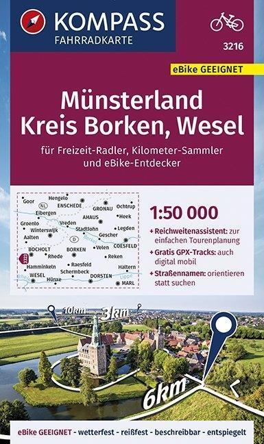 KOMPASS Fahrradkarte Münsterland, Kreis Borken, Wesel 1:50.000, FK 3216 (niemiecki)