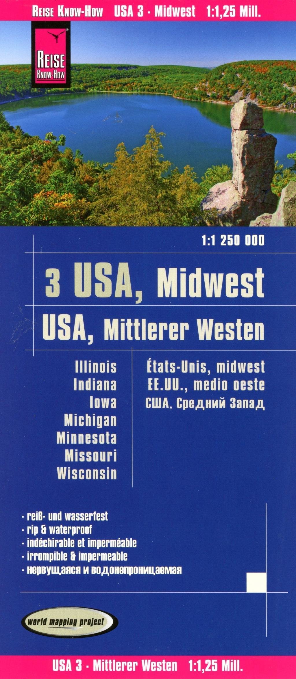 Reise Know-How Landkarte USA 03, Mittlerer Westen / USA, Midwest (1.1.250.000) : Illinois, Indiana, Iowa, Michigan, Minnesota, M (niemiecki)