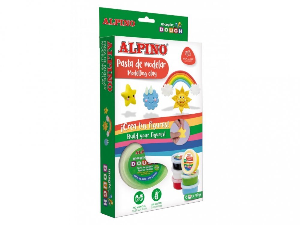Modelovací pasta Alpino Magic Dough Day & Nightmodelovací pasta Alpino Magic Dough (6 x 40 gr) - den a noc + brožura krok za krokem + nástroj pro úpravu.Lehká a flexibilní modelovací pasta pro hraní a vytváření fantastických postav. Elastická, plně mísitelná. Nebarví a neobsahuje lepek ani žádný...